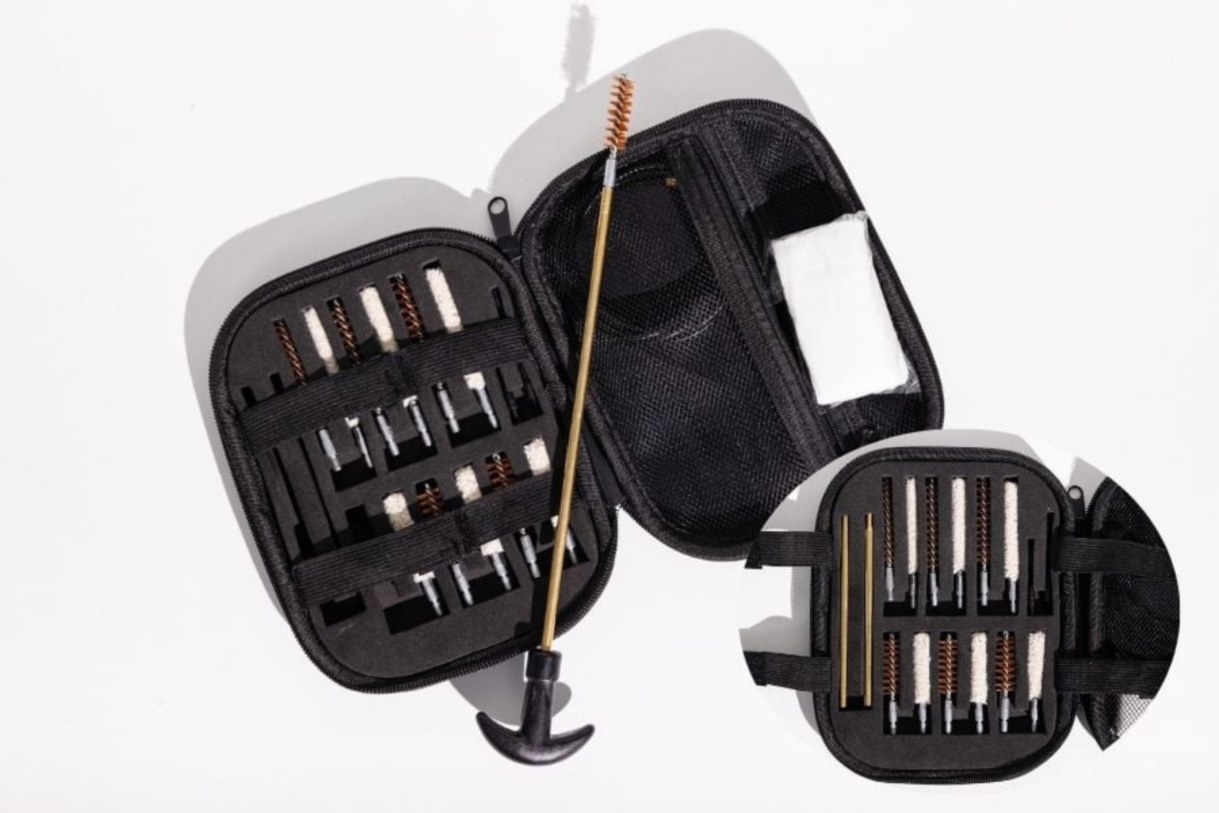 🧰 Universal Gun Cleaning Kit – Compact, portable set with brushes, rods, and tools for maintaining pistols, rifles, and shotguns.